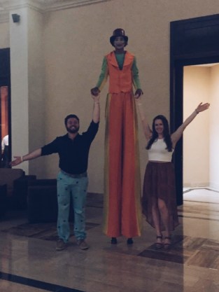 The entertainment at Majestic Elegance was great. Our favorite night was the circus night! We sat back and watched people perform tricks and trapeze artists swing high above the ground. We even got to hang out with this man on stilts before the show!