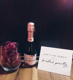 - A mini bottle of rosé with Maid of Honor and Bridesmaid labels