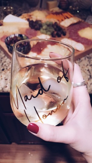 - Stemless wine glasses customized with everyone’s names (I got one that says Bride, and my sister got one that says Maid of Honor!)